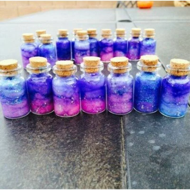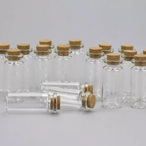 Ez a 5 cm magas és 2,1 cm átmérőjű üvegcse parafadugóval tökéletes választás apró meglepetések, kreatív dekorációk és személyes ajándékok elkészítéséhez. Kompakt formája miatt könnyedén használható csillámporhoz, fűszermintához, szárított virághoz, mini üzenetekhez vagy varázsfiolához.