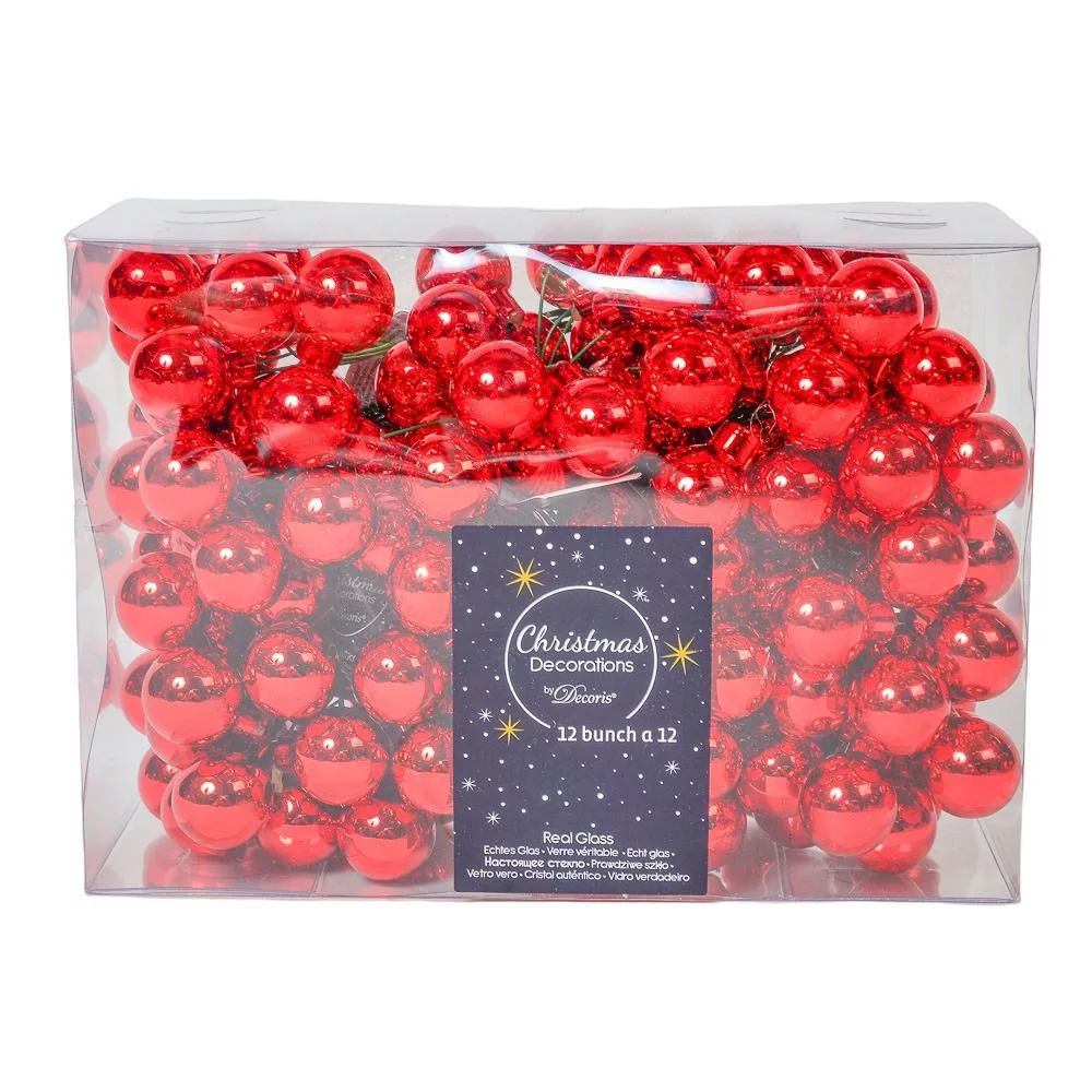 Üveggömb pick piros fényes 2cm 12db-os
