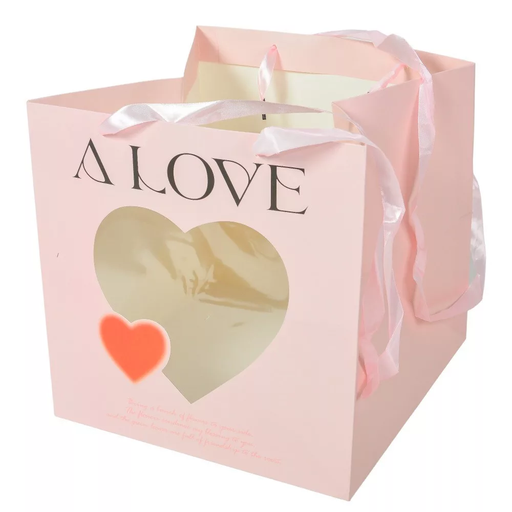 Virágtasak szív ablakos pink M28x28cm