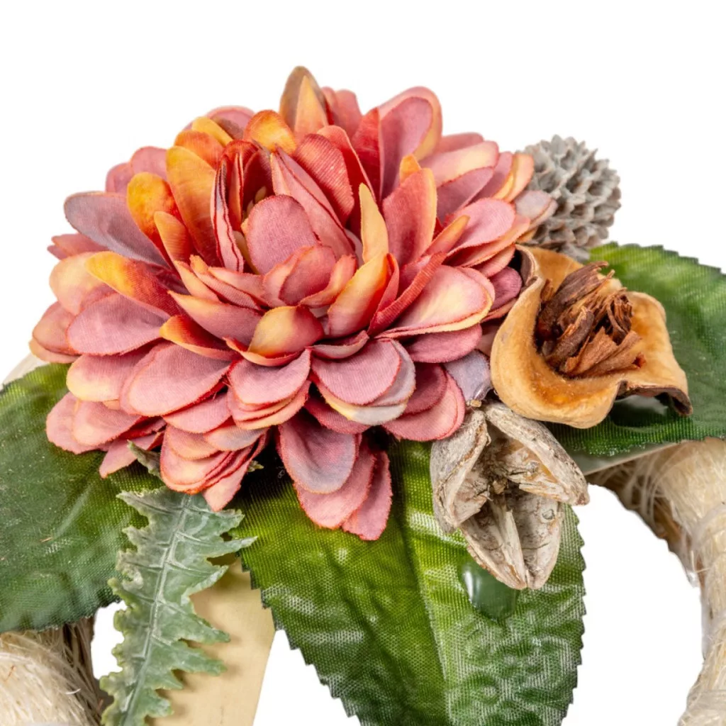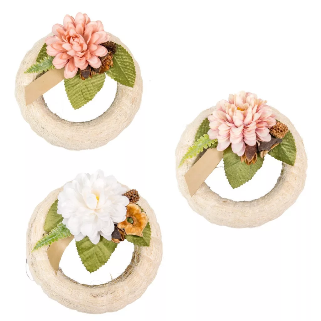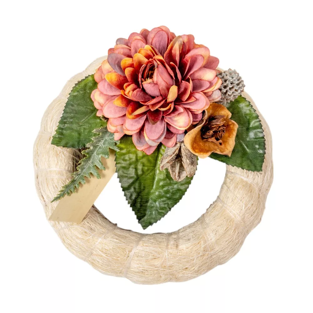 Szizálos széna koszorú szárazvirág díszítéssel fehér 15cm