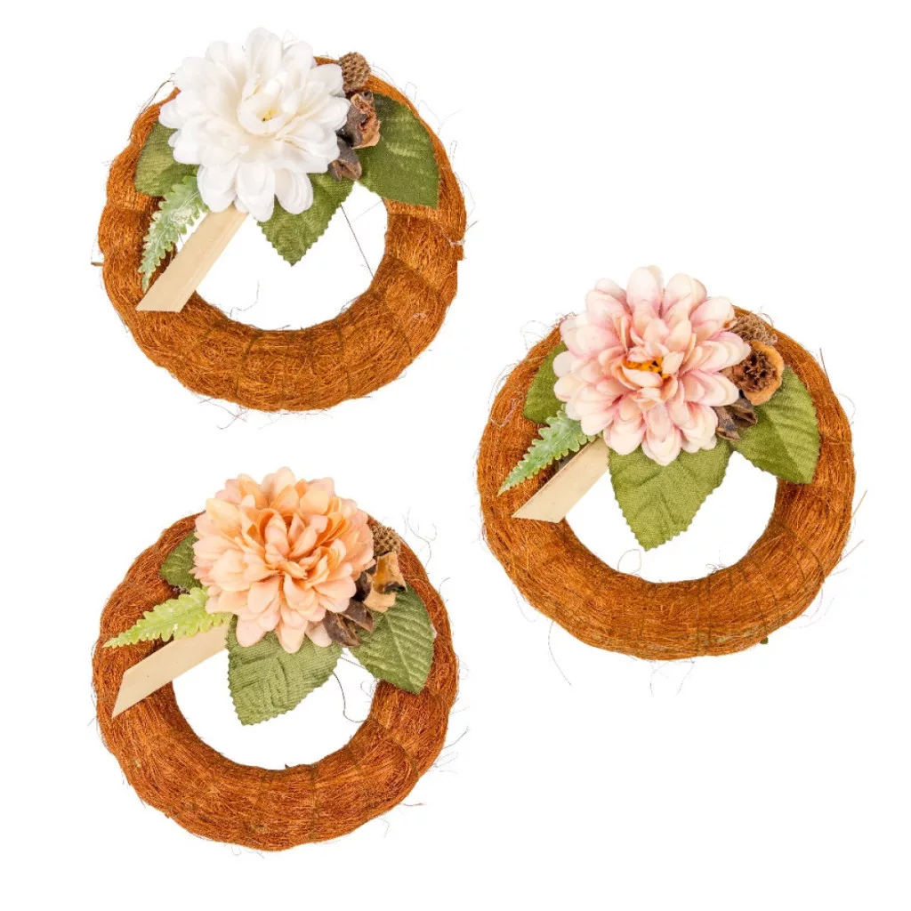 Szizálos széna koszorú szárazvirág díszítéssel barna 15cm